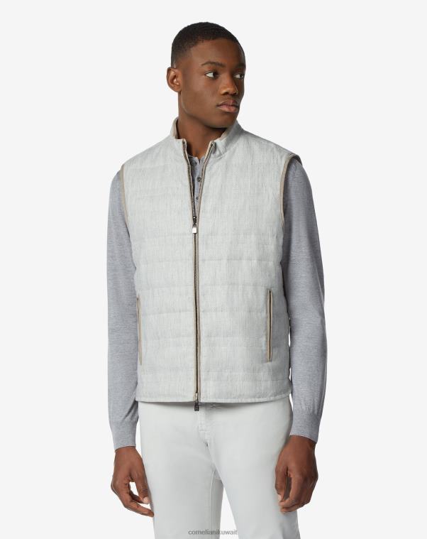 الصدرية الرجالية المبطنة المصنوعة من نسيج التويل والصوف والكتان هي قطعة لا غنى عنها في منتصف الموسم: حيث حولها كورنيلياني إلى ملابس عملية وأنيقة مع أشرطة من الجلد السويدي على الياقة وفتحات الذراعين وحواف الجيوب. توفر الحشوة الأصلية من ريش الأوز أقصى قدر من الحماية من نسائم الربيع بينما يمنح الجزء الخارجي من الصوف والكتان ذو الوجهين الملابس لمسة نهائية راقية.