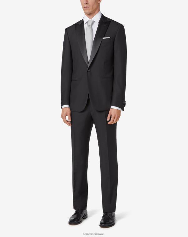 تتميز بدلة العشاء الرجالية ذات الزر الواحد المصنوعة من الصوف البكر الخالص بجودة فائقة 100 قدم بتصميم كلاسيكي جيوب أنيقة ومناسبة، وفتحات جانبية في الخلف للسماح بسهولة الحركة. تضيف طية صدر السترة ذات اللون الساتان والأزرار الموجودة على السترة المغطاة أيضًا بالساتان الضوء على البدلة وتضفي عمقًا على اللون الأسود. يحتوي البنطلون على أزرار لاستيعاب الأقواس إذا رغبت في ذلك، بينما تضمن تفاصيل حزام الخصر ملاءمة مثالية، مما يضمن ثني القماش بشكل مثالي على الساق.
